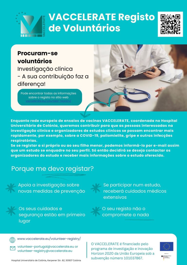 Se estiver interessado em participar num estudo de vacinação para a COVID-19 ou noutro estudo, pode registar-se aqui.