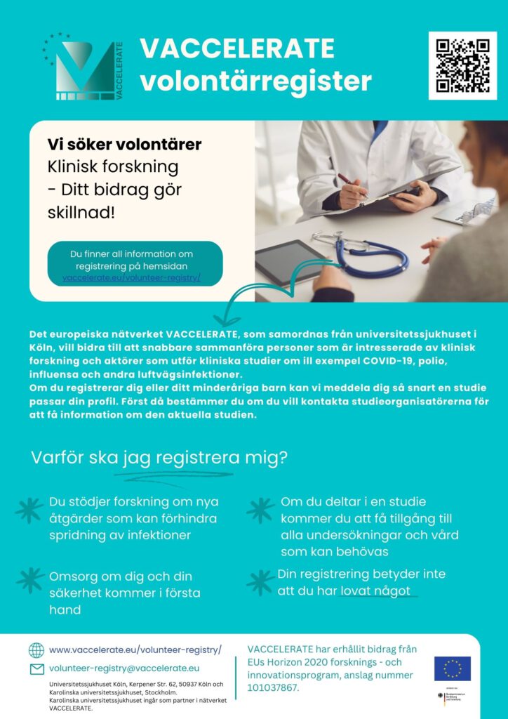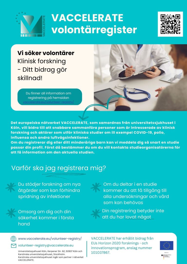 VACCELERATE är ett forskningsnätverk som inrättades på initiativ och med ekonomiskt stöd av Europeiska kommissionen. Syftet med VACCELERATE är att förbättra beredskapen under den aktuella pandemin för att på så sätt öka förmågan att agera – även vid nya pandemier – och därmed på ett avgörande sätt bidra till krisberedskapen.